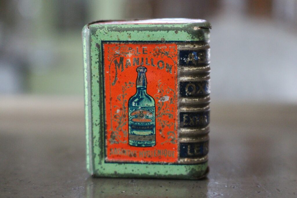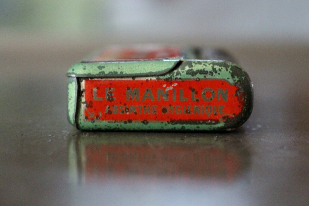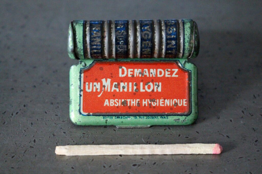 Très rare boite « Absinthe hygiénique Le Manillon » par « boites Carbonne, 19 rue Joubert, Paris ».