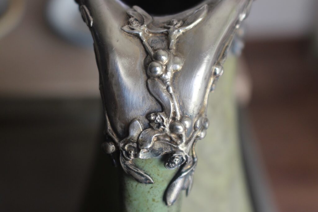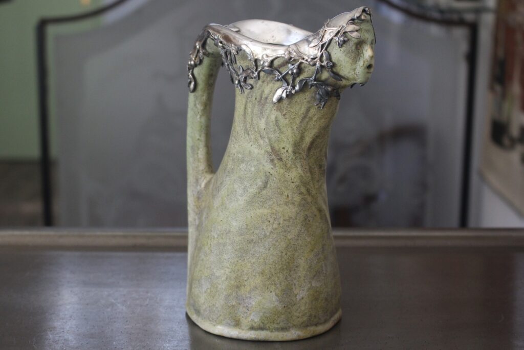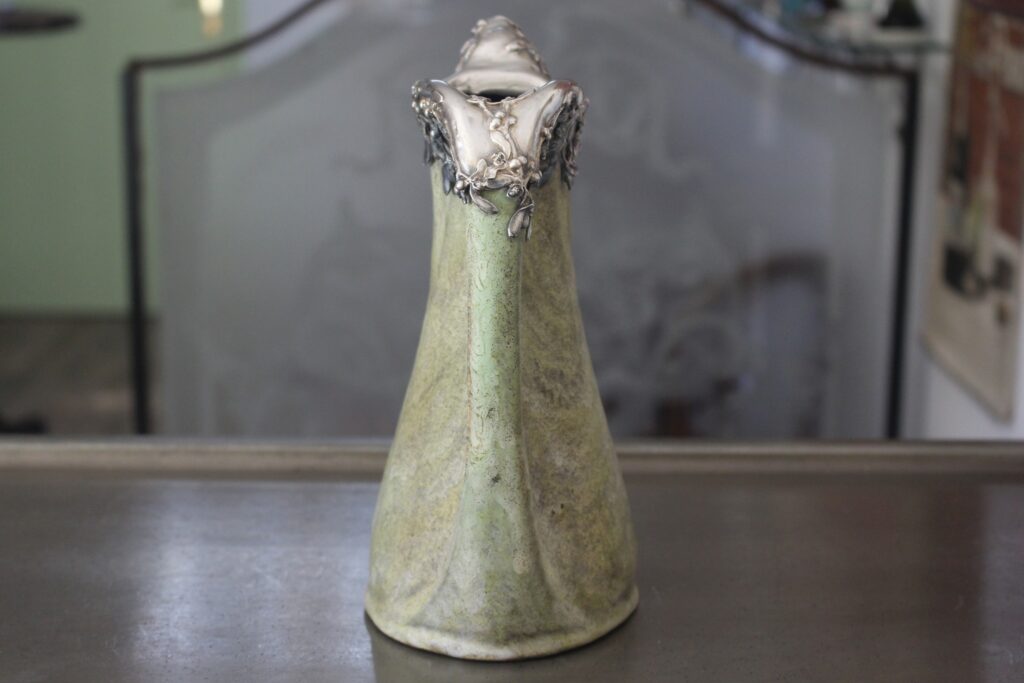 Je suis très heureux de mon achat : un magnifique pichet Firmin Michelet avec une coiffe en argent massif signée. Sûrement une commande bourgeoise!